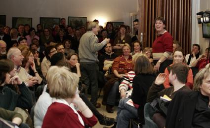 Während der Pause hatten fleißige Hunde-Lobbyisten fast 100 Zettel eingesammelt, auf denen das Publikum Fragen an die Referenten notiert hatten. Erwartungsgemäß musste Jule Thumser das Gros der Fragen an den Staatsrat stellen. Und der fand unerwartet offene Worte. So gab Wersich zu, dass es erklärtes Ziel der politisch Verantwortlichen sei, die in der Kategorie I genannten Rassen aus der Hansestadt zu verbannen. Auch erneuerte er seine Empfehlung an die Hunde-Lobby, sich in den Bezirken für die Umsetzung der Globalrichtlinie (Freigabe von Wegen, Pfaden und Flächen für Hundeführerschein-Inhaber) sowie weitere Freilaufflächen für alle Hunde einzusetzen. In einer Stadt wie Hamburg sei es nicht möglich, durch eine Freilaufflächenregelung in allen Stadtteilen die artgerechte Hundehaltung zu gewährleisten. Und fast schien es so, als ob er die Pläne der Hunde-Lobby, Verfassungsbeschwerde einzureichen, begrüße, denn dieses Gericht habe in einer Demokratie das letzte Wort. Weit von sich wies der Staatsrat die Vorwürfe, Senat und Bürgerschaft hätten zu wenig Expertenmeinungen eingeholt. „Es gab Expertenanhörungen“, so Wersich, „und auch der Tierschutzbeirat hat den generellen Leinenzwang einstimmig gebilligt“. Zu der Rolle von HTV-Chef Poggendorf bei der Entstehung des Hundegesetzes wollte sich Wersich jedoch nicht äußern.